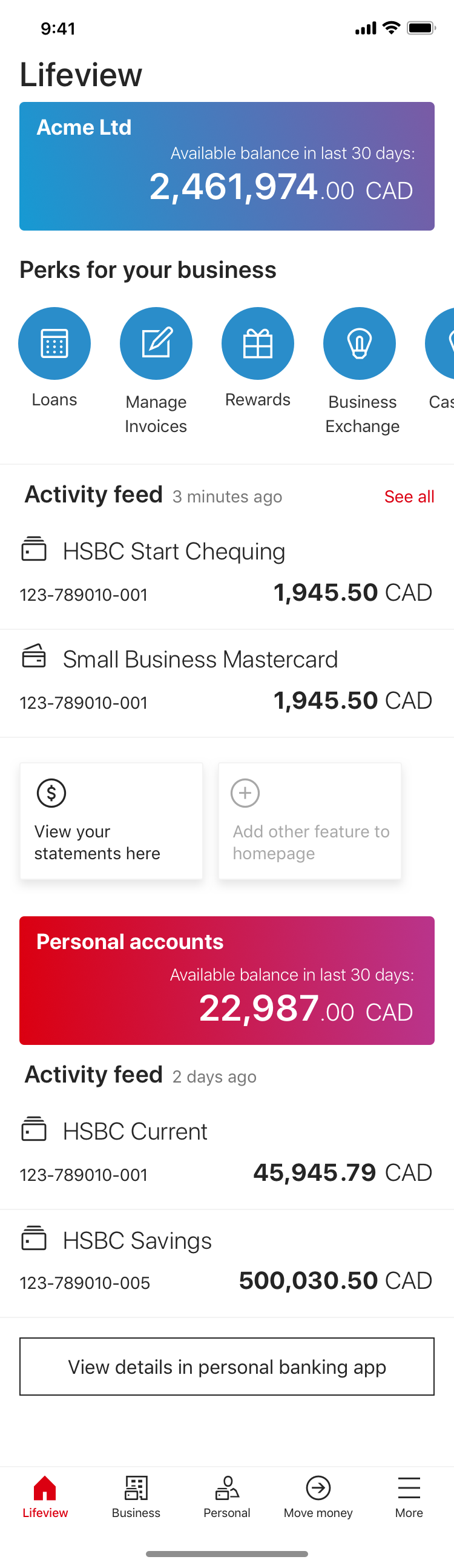 Mobile Fusion is an HSBC banking app designed for small business owners (SMEs) who manage both personal and business finances. Targeting HSBC Premier customers with companies of fewer than 10 employees, the app—currently piloted in Canada—enables users to check balances, deposit cheques, transfer money, and pay bills.