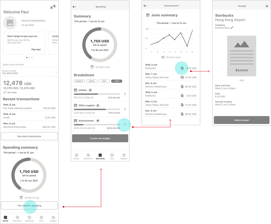 Homepage option 1Recent transactions upfront will encourage users to open the app more often and helps with cashflow planning