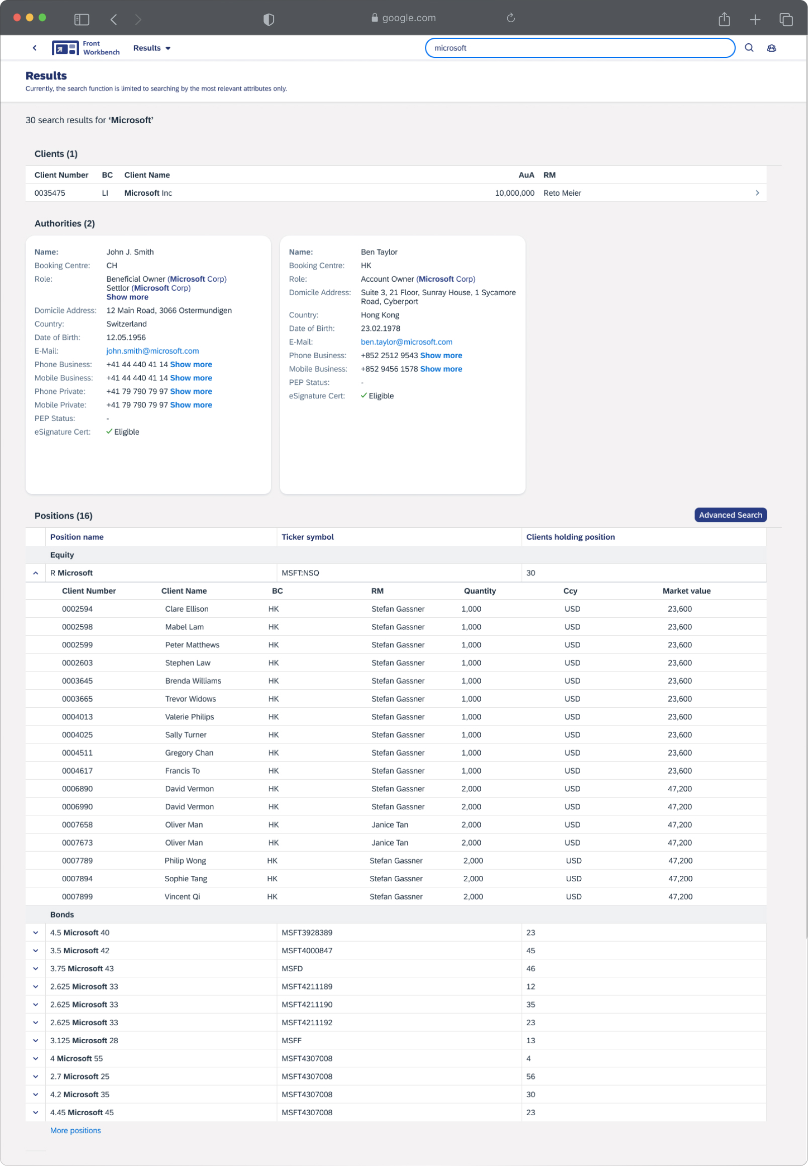 Finding issuers and positions quickly is slow and inefficient, especially if clients have more than one account in different countries