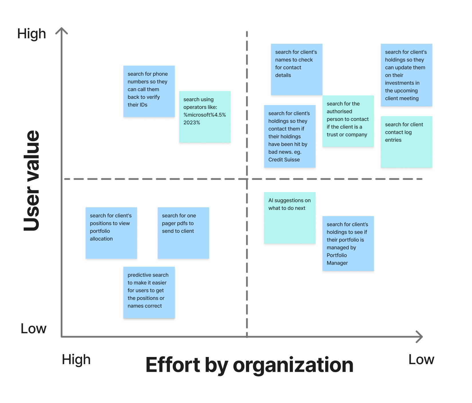 Implementing enhancements for the search feature, based on these insights, would eliminate manual effort, freeing up time for users to focus on higher-value client activities.