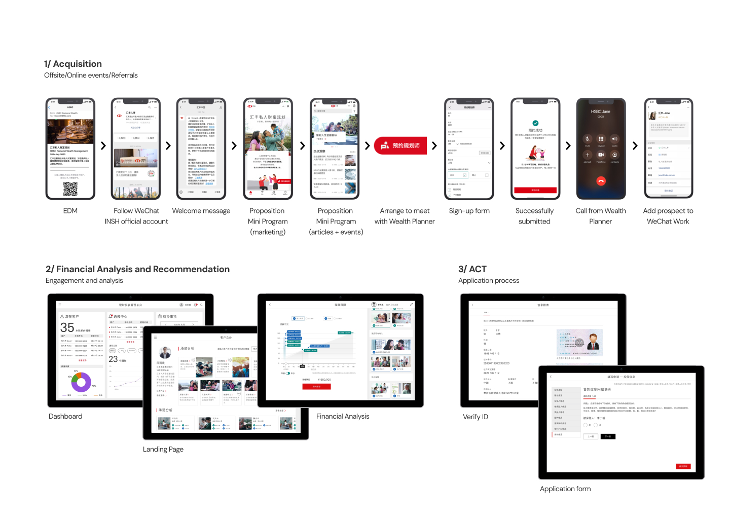 In 2020, HSBC seized an opportunity to expand into mainland China’s wealth management market by launching Pinnacle Venture—a bespoke insurance and investment platform. After acquiring full ownership of its joint venture, HSBC started on its plan to grow its portfolio of high-net-worth Non-Resident Chinese (NRCs) - riding on their track record of trustworthy foreign-backed, long-term wealth solutions.I was one of an in-house team of six global designers (Hong Kong/Guangzhou based) working alongside five other mainland China designers (Shanghai based) who were brought onboard to help create an E2E journey that consisted of three main parts: