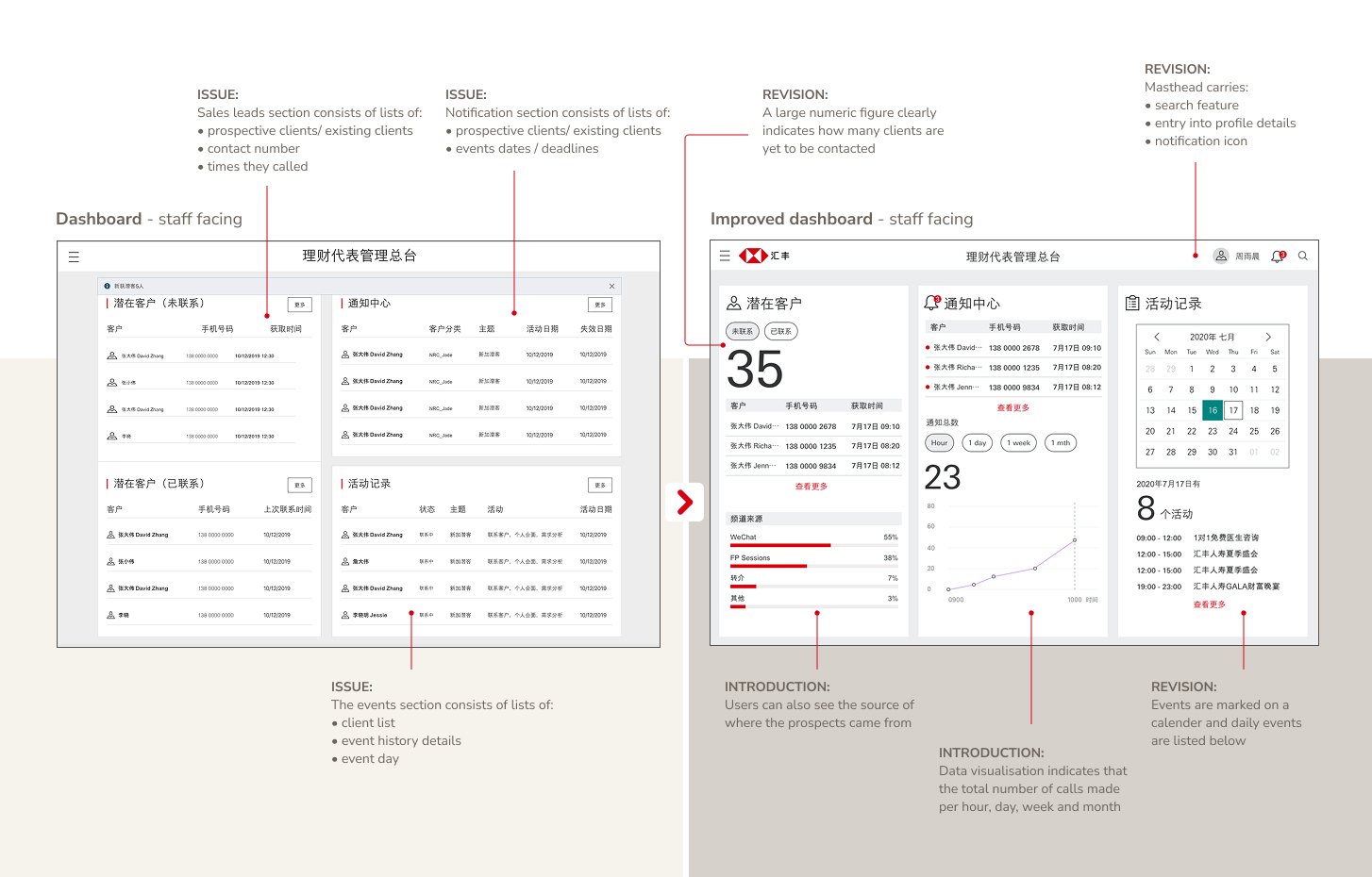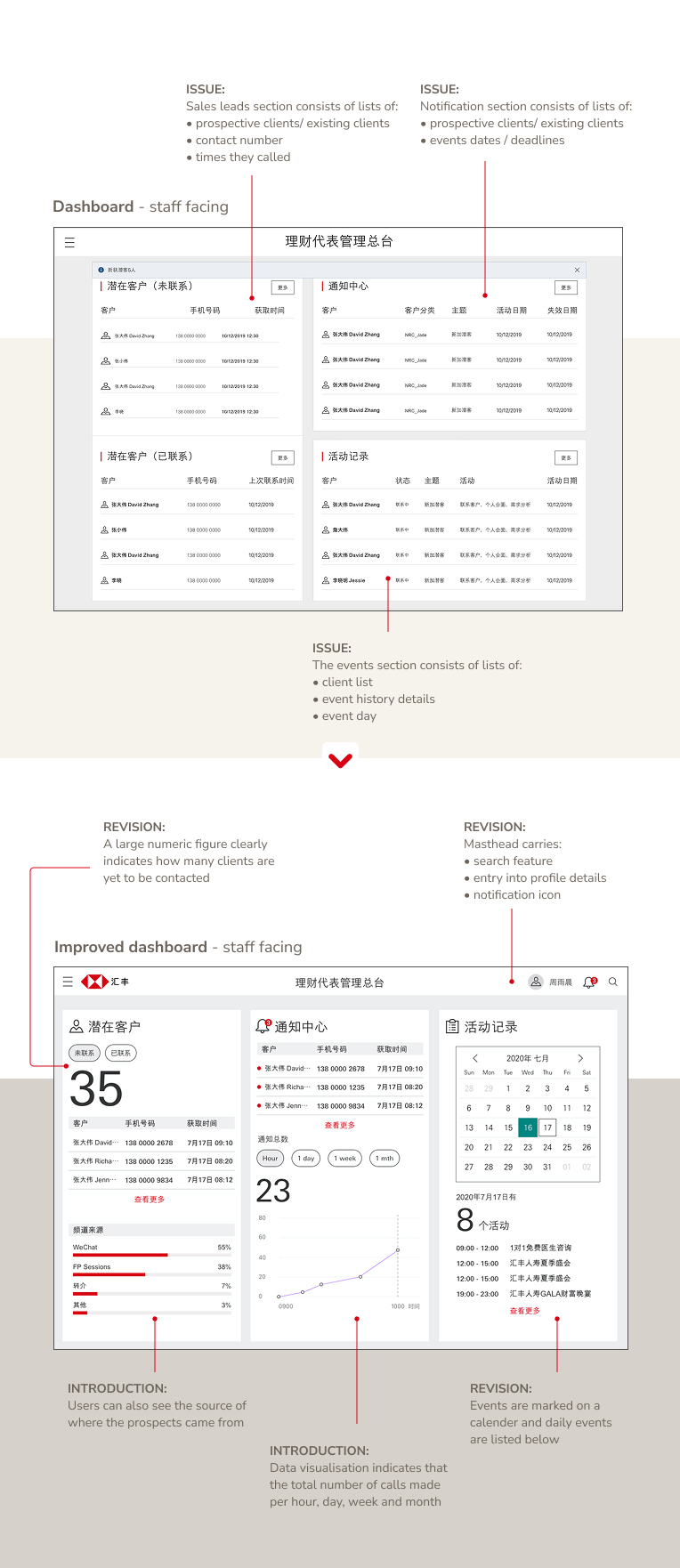 Improved data visualisation for the dashboard to engage sales staff. Easier for users to read and understand at a glance.